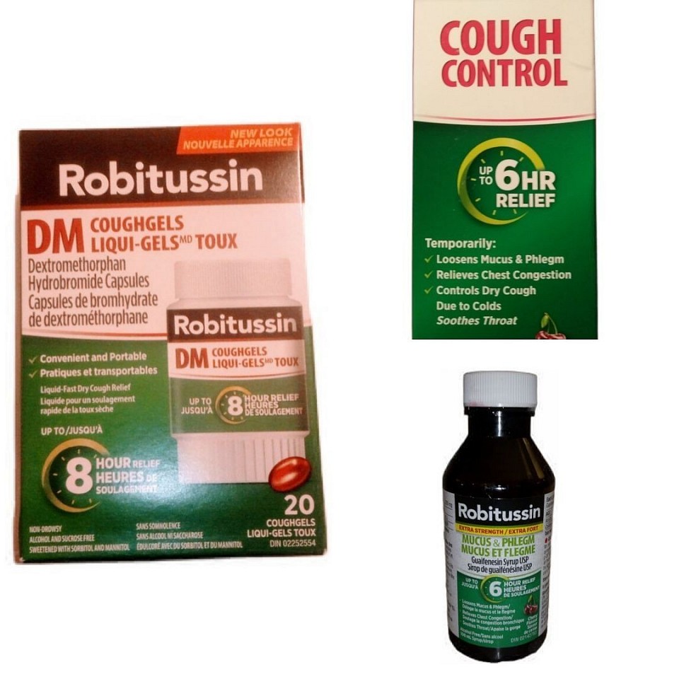 Robitussin Coughgels, Robitussin Mucus and Phlegm, and Robitussin Cough Control.